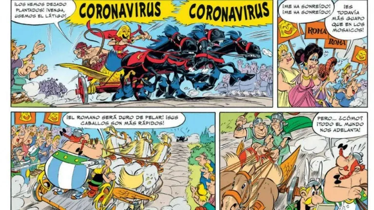 En un número de Astérix y Obélix de hace un par de años, un auriga llamado Conoravirus participa en una carrera de cuádrigas por toda la península Itálica. Eso sí, no hay más coincidencias. No hay ninguna epidemia en este episodio de los irreductibles galos.