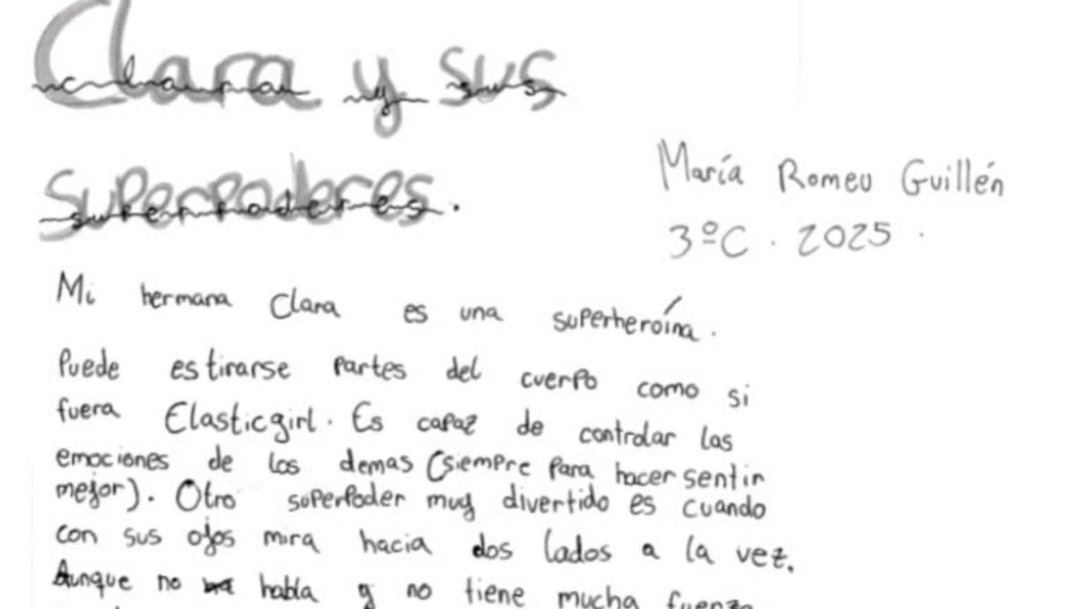 La carta, escrita por María Romeu Guillén, estudiante de tercero de primaria, fue leída en el programa y describe a su hermana de una manera muy especial. La misiva comienza afirmando con rotundidad que "mi hermana Clara es una superheroína".