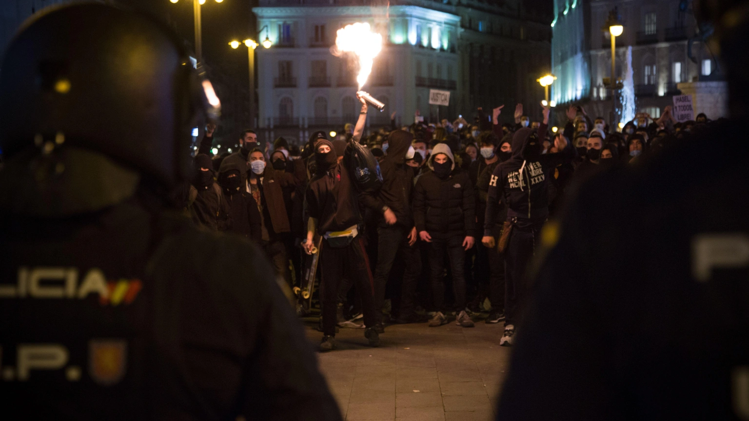 Protestas en la Puerta del Sol en 2021 a favor del rapero Pablo Hasel