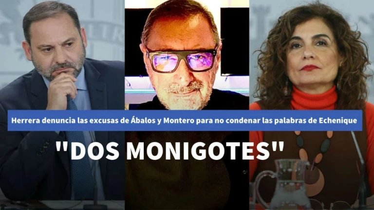 En este sentido, Herrera ha lamentado especialmente las palabras de Ábalos y la portavoz del Gobierno, María Jesús Montero. "Tras Salió Ábalos y la ministra portavoz María Jesús Montero, que si ya cuesta entenderla, en los argumentos que utilizó con esto daba vergüenza ajena, piruetas para no condenar a Podemos. Qué poca vergüenza. miren ustedes, si la violencia en las calles en lugar de extrema izquierda, si la protesta por el encarcelamiento de un delincuente, como es el tal Pablo Hasél, la estuvieran recibiendo seguidores de Vox, de PP y Ciudadanos no quiero ni pensar lo que estos dos monigotes estarían diciendo. No lo quiero ni pensar"