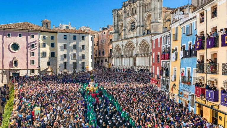 La Semana Santa es una de las más bellas de España. Don Jorge Sánchez presidente de la Junta de Cofradías de Cuenca, asegura que de 50 mil habitantes, la mitad son cofrades: “la participación es en torno a 25 mil nazarenos”. Está declarada de Interés Turístico nacional “por una conjunción de muchas cosas: por su singularidad y por un casco patrimonial por el que discurre que es sin igual”.
