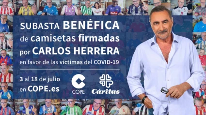 Conscientes de la necesidad de seguir arrimando el hombro, COPE y Carlos Herrera ponen en marcha una subasta de carácter benéfico para que los oyentes y aficionados puedan conseguir las camisetas oficiales que el comunicador líder de la radio española ha vestido estos últimos meses. Una puja a través de la plataforma especializada Catawiki y accesible desde www.cope.es, cuyos beneficios canalizará Cáritas, entidad que viene desarrollando una encomiable labor de asistencia y consuelo frente al coronavirus.