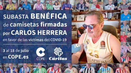COPE lanza una subasta benéfica de camisetas oficiales de deporte firmadas por Carlos Herrera