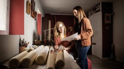 El volumen de encargos del taller “Iconos y Cirios” sigue creciendo año a año, algo a lo que Elena ha encontrado solución con la incorporación de una nueva trabajadora: su hija Débora, que estudió en una escuela de arte. Ahora, ambas encuentran su inspiración en el estilo románico de los códices, los frontales romanos y la iconogragía bizantina y oriental, para los que se documentan en profundidad.