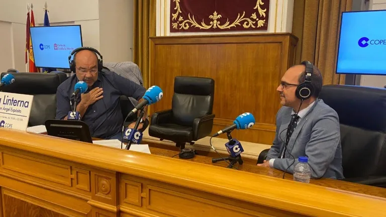El presidente de las Cortes de Castilla-La Mancha charla con Expósito en La Linterna por los 40 años de la entrada en vigor del Estatuto