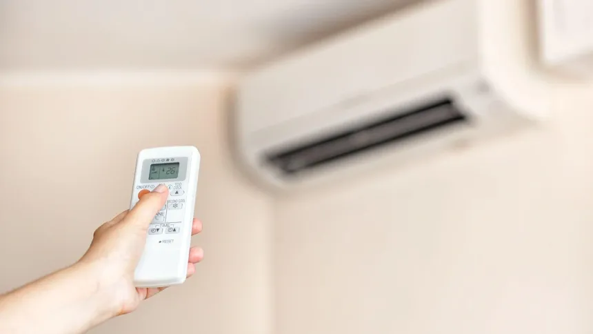 Un hombre sostiene un termostato para medir la temperatura de la casa