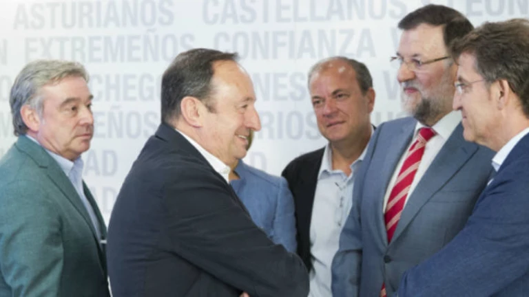 Mariano Rajoy con algunos de los barones del PP antes del Comité Ejecutivo. PP
