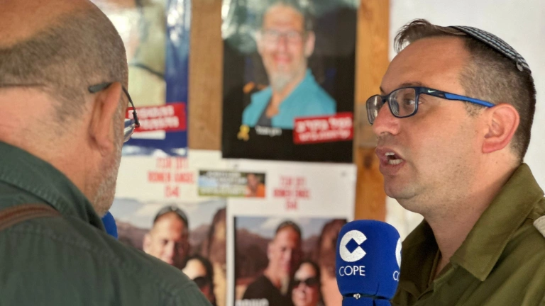 El equipo del programa La Linterna de COPE, con Ángel Expósito al frente, ha viajado hasta el kibutz de Nir Oz, a tan solo 1,6 kilómetros de la Franja de Gaza, para relatar desde uno de los epicentros de la masacre del 7 de octubre la frágil realidad que se vive en la zona. La visita coincide con el entierro de Ronen Engel, uno de los residentes asesinados cuyo cuerpo ha sido devuelto recientemente por Hamás. En este escenario, marcado por la proximidad del conflicto y el sonido de ametralladoras, el portavoz del Ejército de Defensa israelí, Ronie Kaplan, y Itzik Horn, padre de dos rehenes liberados, han compartido su testimonio.