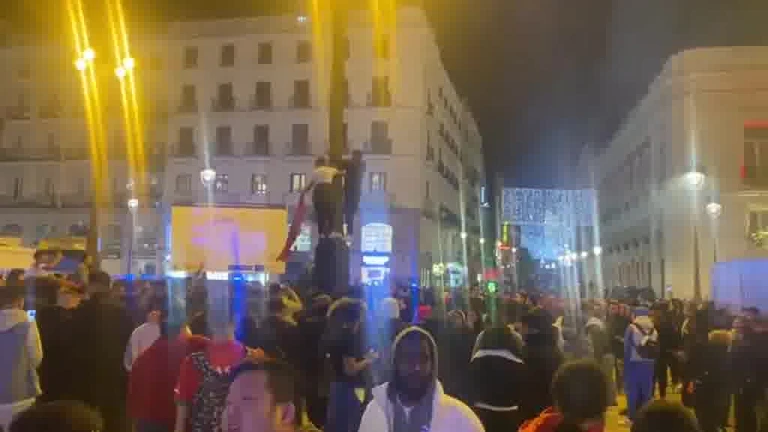 Cientos de marroquíes se reúnen en la Puerta del Sol para celebrar su victoria frente a España en el Mundial