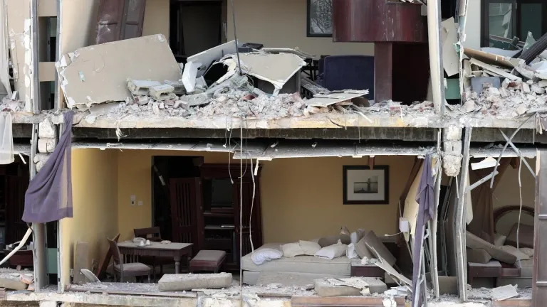 El suceso, que se producía antes de las 11 de la mañana cuando un camión cisterna de gas licuado servía un depósito del hotel, hizo que colapsase una sección del edificio -de siete pisos- y que se desprendiese la fachada de las tres primeras plantas, provocando una lluvia de toneladas de escombro sobre una acera habitualmente concurrida y quedando el camión cisterna parcialmente sepultado.