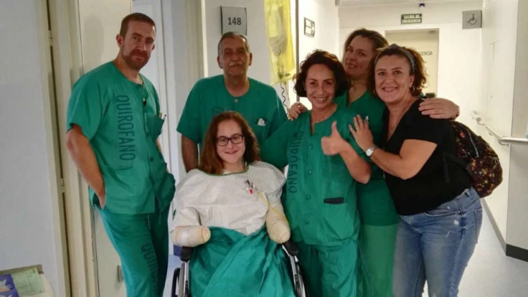 Dice Sarah Almagro que “la buena noticia es que la infección en la rodilla que me trataron a principios de año ya se ha curado y eso va a permitir que pueda ponerse las prótesis dentro de poco”. Para eso de todas formas debe ganar musculatura y para eso está haciendo rehabilitación.