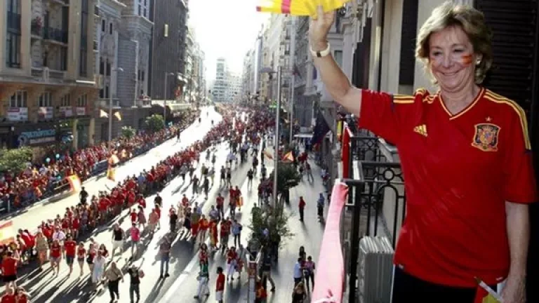 Esperanza Aguirre era la presidenta de la Comunidad de Madrid en el año 2010, el año en el que España ganó el Mundial de Sudáfrica. ¿Cómo vivió la final entre España y Holanda la presidenta? Aguirre ha recordado en 'La Noche de Adolfo Arjona' que el partido lo vio “en casa de unos amigos junto a su marido. Recuerdo el día de la celebración cuando la Selección pasaba por las calles de Madrid. Yo estaba con mi nieta en un balcón de la Gran Vía”.
