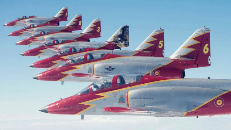“Volar en la Patrulla Águila supone un riesgo máximo”. Son palabras de Rosa María García-Malea, primera mujer en pilotar un F5, un F18 y en formar parte de la Patrulla Águila, el grupo de vuelo acrobático del Ejército del Aire creado en 1985. Hacen maniobras como el looping invertido y el aterrizaje en formación durante sus exhibiciones por España y Europa.