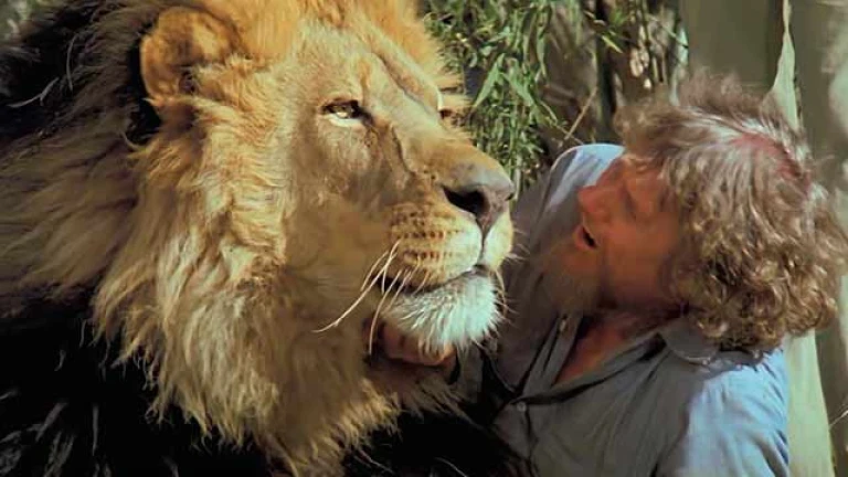 Un productor que un día tiene una revelación y decide rodar una película de trasfondo ecologista en la que utilizaría a leones reales. Pero no uno, ni dos, sino decenas y decenas de ellos. Con estos ingredientes, Noel Marshall empezó a dar forma a ‘El gran rugido’ doce años antes de su estreno: lo hizo seguramente con toda su ilusión, y el resultado fue lo que comúnmente se conoce como “el rodaje más peligroso de la historia del cine”. Marshall buscaba las imágenes perfectas, y se negaba a cortar incluso cuando los actores pedían ayuda. La sangre que vemos es real, y ‘El gran rugido’ fue su primera y última película.