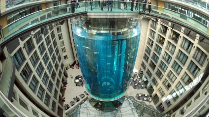 El Mundial se usa en los colegios para enseñar algunas materias y animar al debate; Tertulia ; y Revienta en Berlín el mayor acuario cilíndrico del mundo