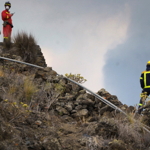 Los servicios de emergencias trabajan para canalizar la lava. Lara ha perdido su casa.