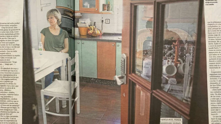 La foto que me ha llamado la atención la publica el diario El Mundo. Es un retrato tomado en una cocina muy limpia y muy ordenada, ordenada por manos primorosas. Al fondo, sobre uno de los muebles, se distingue un frutero bien provisto: manzanas, peras y plátanos. La cocina tiene una mesa con sillas blancas y en una de esas sillas está sentada Ana. Ana es una mujer delgada, coqueta. viste camiseta y jeens. Ana, en el retrato, tiene la mirada perdida, el cuello tenso, los labios finos y cerrados y un poco de lapiz verde en la linea de los ojos. Ana no es una jovencita pero hay algo en su gesto y en su cara que le da una frescura. La puerta de la cocina tiene una clave para que el hijo de Ana, el mayor, Darío, no pueda coger lo que hay en el frutero, en la nevera, en el horno. Darío tiene una enfermedad rara y nunca se sacia, puede comer mucho más de lo que necesita. La puerta de la cocina es grande para que entre por ella el andador de Jerónimo, el padre de Ana, que tiene parkinson. Ana cuida de su hijo Dario y de su padre Jerónimo. Ana ya no puede trabajar fuera de casa. Los días y las noches, las horas, una tras otras son para el padre y para el hijo. Hace meses Ana dejó de dormir, no tenía ganas de nada, no podía más. Ahora le han echado un mano y Ana ha salido del pozo en el que cayó. Porque la vida a veces pesa mucho, porque una quiere dar toda su vida, pero a veces, muchas veces, no puede más y necesita que la cuiden a ella, que la rescaten a ella. Porque una, sola, nunca puede. Ana sigue cansada, pero sigue cuidando, sigue necesitando, como todos, no estar sola. Y es lógico que Ana esté fatigada, es lógico que en los pocos minutos en los que se sienta a reposarse en la cocina se le vaya la mirada, porque Ana no lo sabe, pero Ana lleva mucho peso encima, lleva el peso del mundo, Ana no cuida solo de su padre y de su hijo, Ana hace posible que el planeta entero siga girando.