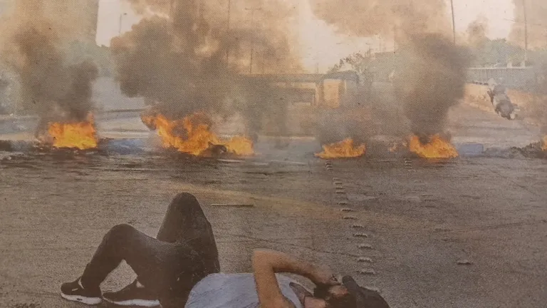 La foto que me ha llamado la atención la he visto hoy en La Vanguardia. Es una imagen de un país que está en la otra punta del Mediterráneo, un país lejano pero parecido al nuestro. La foto recoge un momento extraño en una de las calles de la capital. La calle está desierta. Es una gran avenida con pasos elevados. Sobre el asfalto manchado de negro se elevan cuatro columnas de humo, candelas que huelen mal, llamas de gasolina o de un aceite que dejan el aire sucio tan sucio como el desamor hacia una madre. Detrás del fuego, el día aparece sereno, luce el sol como si nada estuviera ocurriendo. A unos metros de la humareda un joven está tumbado en el suelo Usa zapatillas de deporte y lleva tatuajes en los brazos. Se le ve extrañamente relajado, tranquilo. No parece que tenga ni herida ni alteración en el alma. Con una mano debajo del cuello mira el incendio. Sin hacer nada. Seguramente el joven de la foto ha apagado muchos incendios en su vida, ha dedicado sus mejores energías a que el fuego no hiciera daño, ha cargado con cubos de agua, ha hecho cadena durante largas horas, ha sido el mejor y más valiente de los bomberos. Ha arriesgado su vida cuando el infierno desataba sus entrañas, ha sido el primero en subir al camión, el primero en apuntar con la manguera. El último en marcharse, el más suspicaz y el más atento en velar por que no quedara un solo ascua encendida. Y ahora no. Ahora mira el fuego y no se mueve. Sabe que hay incendios que no tienen solución, que hay columnas de humo invencibles, las que provoca el humano albedrío. Sabe, porque el tiempo se lo ha enseñado, que hay veces que cuando se ensucia el aire no hay remedio. No hay más solución que buscar un sitio donde corra limpio.