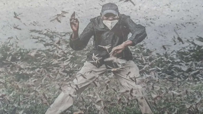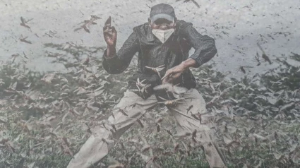 La foto que me ha llamado la atención la he visto hoy en la Vanguardia. El protagonista es un hombre negro, delgado, ya con algunos años. Una mascarilla blanca y una gorra azul con la visera muy calada le dejan al aire solo la nariz y los pómulos. El hombre tapado abre mucho las piernas y agita sus grandes manos. Las agita porque en medio de la campa en la que está se ha visto rodeado por un enjambre de decenas, de cientos de langostas. Las langostas están por todas partes, forman una nube densa de alas que chocan entre sí. Cada langosta tiene un vuelo sin rumbo, solo las anima una voracidad angustiosa. El zumbido es ensordecedor. Parece que el aire ha dejado de ser respirable. Casi cubren el cielo, convierten la tierra en otro tiempo serena en un infierno. Y el hombre de la foto, instintivamente pretende apartarlas con sus grandes manos y acierta a golpear a una docena. Es un movimiento instintivo. El hombre de la foto tiene ese momento el reflejo que nos agita a todos cuando el daño de la plaga ya es inevitable, cuando ha destrozado las cosechas. Nos parece, como al hombre de la foto, que dar manotazos, que hacer llamadas, analizar desde arriba y desde abajo lo sucedido, imaginar cómo sería el mundo sin langostas, como sería el mundo sin la perdida que hemos sufrido. Nos resistimos a aceptar lo inevitable tan acostumbrados como estamos a pensar que todo depende de nuestras modestas fuerzas.