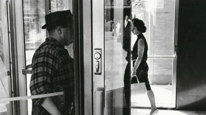 La foto que me ha llamado la atención la he encontrado hoy en el catálogo de la exposición que la Fundación Mapfre ha organizado sobre ese gran fotógrafo que es Lee Fried-lander, un estadounidense que ha retratado como nadie, durante décadas, la vida cotidiana de los norteamericanos. En este caso se trata de una imagen en blanco y negro. Lee disparó en los años 50 su cámara contra una puerta giratoria de un gran edificio de Nueva York. Una luz fría, casi metálica, hace claroscuro con los tres protagonistas del cuadro. El primero es un hombre que viste una camisa a cuadros y se cubre con un sombrero bajo, empuja una de las alas de la puerta, no se le ve la cara. Mientras entra, sale por la giratoria una mujer joven, con un vestido ceñido, una falda corta y unos elegantes zapatos de tacón a juego con un bolso claro. La chica está ensimismada en sus pensamientos, en lo que mastica su corazón. Quizás un desengaño, una frustración. Y del tercer personaje tenemos solo el reflejo, también en la puerta, el reflejo de un directivo con traje y corbata que carga con una cartera muy pesada. Hombre a cuadros, chica joven elegante sobre tacones, hombre de negocios en una encrucijada de cristal y de metal. Seguramente no se conocen, no se han visto nunca. Por un instante comparten su sitio en el mundo. Nos pasa a menudo, compartimos un instante en el mundo con desconocidos. Estoy seguro que si los tres personajes sentaran a tomar un café, si se contaran sus vidas, se darían cuenta de cuántos deseos, de cuántas vibraciones, de cuantas razones están escritas en su alma con una gramática compartida.