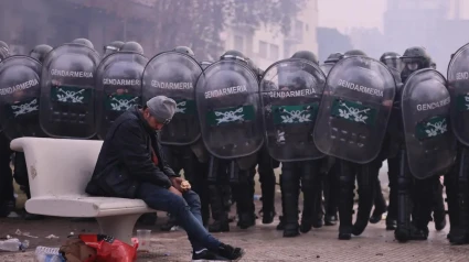 Foto de una calle donde hay disturbios. Es una calle peatonal y está sucia, en el suelo quedan algunos restos de comida, barro, vasos de plástico. La calle está cortada por una fila de hombres uniformados de negro, con cascos, con pasamontañas que tapan la cara, con escudos que le dan a la formación el aspecto de una gran tortuga que avanza protegida por un caparazón multiforme. Los hombres detrás de los escudos, ocultos tras el camuflaje, hacen su oficio, es un oficio importante, pero parecen haberse disuelto el anonimato. Delante de los escudos hay un banco de piedra y en el banco más que sentado derrumbado reposa un joven con medio bocadillo en la mano y la cabeza hundida entre los hombros. Parece haberse quedado dormido en medio del fragor del enfrentamiento callejero. No es posible que los hombres que avanzan en formación estén en alerta por el joven abatido que reposa en el banco. El peligroso adversario, debe estar fuera de la foto y debe ser más peligroso. El adversario, el enemigo, tiene que ser una amenaza seria, una amenaza que pone en cuestión una forma de vida, que nos invade para quedarse con nuestro tierra y nuestras mujeres. No éramos nadie, la sombra de un sueño, un suspiro en un charco, y llegaron el adversario y el enemigo y supimos por fin cuál era nuestro nombre, cual era nuestro apellido. Desde entonces nos llamamos resistencia.