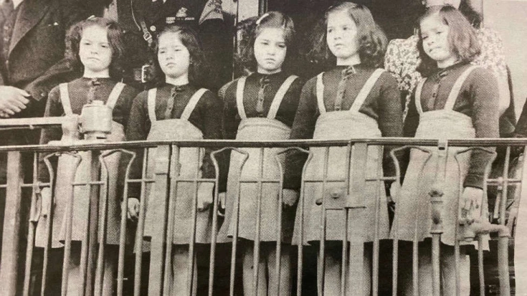 Foto del día: " En la foto las niñas están detrás de la reja de un balcón".