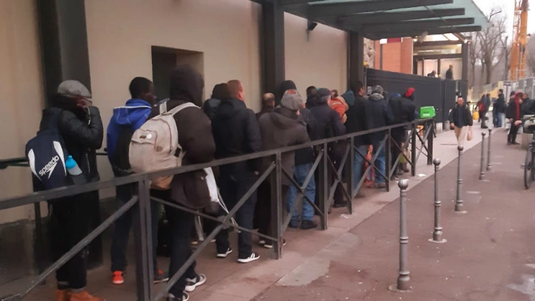 Los de la cola están a cara descubierta esperando un imprevisto bueno, esperando que alguien les de pan para poder dormirse con el estómago lleno
