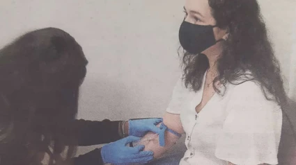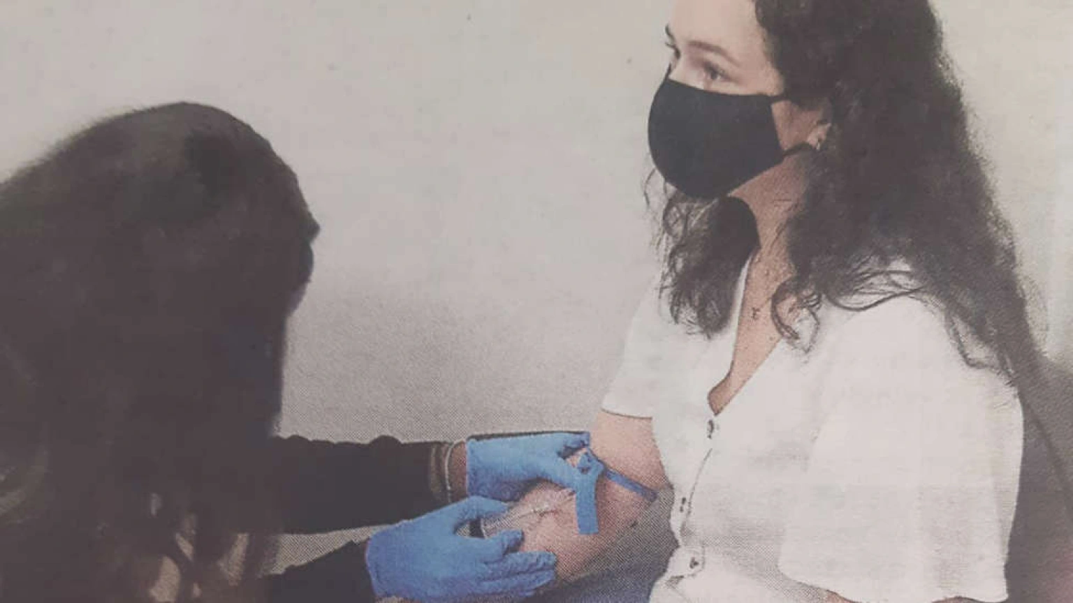 La foto que me ha llamado la atención la he visto hoy publicada en el diario El País. En una habitación de paredes blancas, con una luz que no se sabe de dónde viene, dos chicas están frente a frente. Una de las chicas, pantalón vaquero, camisa blanca y mascarilla negra mira hacia el frente. Tiene la chica un brazo apoyado en el muslo y el otro brazo vuelto, entregado mientras le meten una aguja en una vena para sacarle la sangre. Le están haciendo pruebas. La chica no mira la aguja, no mira la herida, mira hacia delante y en sus ojos está su madre poniéndose muy guapa y oliendo a colonia para ir de fiesta, en sus ojos está la rosa de otoño que ha quedado milagrosamente suspendida entre dos días de lluvia, está el petirrojo con su incendio en el pecho saltando entre la hierba, están los castaños vestidos de príncipes con un manto de ocre y de oro, está en los ojos de la chica la viejita casi desnuda de aquel pueblo de la India que recogía el agua de la fuente, la niña negra que bailaba con la música de las estrellas bajo el cielo de África, en los ojos de la chica está la risa del yonqui cuando le dieron un beso y un abrazo y le llamaron por su nombre, están los ojos en el ciprés que, como su ánimo rompe el cielo, están los ojos de la chica no en la herida, no en la aguja, sino en lo que le importa y lo atiende despacio, rendida dichosa.