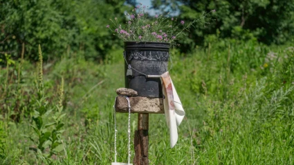 La foto que me ha llamado la atención la ha encontrado hoy en internet. Es de un fotógrafo estadounidense que se llama Alec Soth. Cuenta Alec que cuando era pequeño le gustaba hacer cabañas cerca de su casa y que en colegio le dominaba la pasión por crear con las cosas que se iba encontrando por la calle. La foto está disparada al borde una huerta descuidada. Están las hierbas altas y el tallo de la que parece un planta de calabaza busca el cielo. Junto a una viga de madera puesta en pie hay unos zapatos de señora, zapatos elegantes como para una boda. Y sobre la viga de madera una lata estrecha y sobre la lata estrecha una piedra en horizontal. La torre parece no tener sentido, pero el espectador lo descubre enseguida porque está coronada por una gran maceta con flores que parecen los pelos elegantes de una dama. El acertijo visual se simplifica: de la piedra y del tronco cuelga un bolso. Y la lata pequeña es el talle de la insigne y la viga sus elegantes piernas. Zapatos, bolso, flores, piedra y madera han servido para construir, para deletrear a una distinguida y educada mujer de mediana edad que pasea entre las huertas, esparciendo su señorío entre lo que parece insulso, un simple huerto descuidado. Alec, el fotógrafo, ha deletreado un nombre de mujer con material de derribo. ¿Quién nos deletrea a ti a mí cuando el amanecer nos sorprende como si fuéramos material de derribo abandonado a nuestros miedos y fatigas?