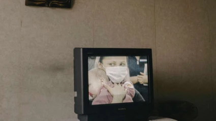La foto que me ha llamado la atención la ha encontrado navegando por la red. Es de una fotógrafa rusa, Nanna Heitmann que normalmente retrata estepas, campos de horizontes infinitos, mineros. Esta vez lo que ha retratado es el estar de una casa pobre en Rusia. La foto tienen el grano que tenían las imágenes antes, como si se hubiera hecho con una Polaroid y están los colores desleídos. En el estar de la casa rusa no parece que haya grandes ventanas, la luz es tímida, luz de casa pobre. Fuera quizás haya grandes espacios, grandes estepas, quizás un gran cielo en el que despunta ya el lucero. Del estar ruso se ven dos cuadritos baratos, copias de marinas y una televisión de las antiguas, de las que tenían todavía bombillas. La televisión está puesta con primor sobre una mesa redonda cubierta con una mantelito bordado. Y la pantalla emite la imagen de una madre joven con una mascarilla. Y son los ojos de la madre, centinelas, y la mano de la madre, grande, firme, que reposa sobre la espalda de un niño pequeño, son los ojos, la mano y el niño los protagonistas de la foto. Los ojos de la madre parecen relámpagos, y el niño acomoda, acurra su cabeza casi sin pelo todavía en el hombro y en el pecho de la madre. Tranquilo, confiado, entregado. ¿Quién puede tener miedo con esa mano firme en la espalda, quién puede ser presa de la angustia bajo esos ojos? No se olvidará, no se distraerá la madre, no. No puede ser, no puede ser el final diferente al comienzo, no puede ser, no puede ser la mitad del camino diferente al principio.