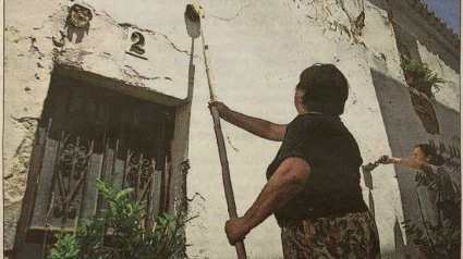 La foto que me ha llamado la atención la publica el diario El País. Es la foto de una mujer, de espaldas, con una caña. Tiene ensartada en la caña un cepillo empapado en cal. Agarra la mujer la caña con dos manos y encala con vigor la fachada de su casa, fachada de un blanco infinito, fachada de nieve, de nardo y de salina. Blanco infinito en una casa humilde que brilla con la luz imposible, la primera luz del Atlántico en Medina, la luz de Cádiz. Esta la casa en Medina Sidonia, el pueblo en la colina, pueblo que navega ya sobre un mar de amapolas, de jaramago, de flores malvas, de alcornoques, de un océano de verde que brilla bajo la primera luz del mundo, la luz del Atlántico en Medina. El blanco de la cal en la casa pobre. Con esa luz, con la brisa que llega de Africa, después de haberse bañado en playas de oro, después de haber jugado con faros solitarios, después de haber mecido al trigo, después de haber dado la vuelta al mundo, esa luz, esa brisa, ese blanco, hacen a la mujer de la foto la más rica del Universo. Ya quisieran los agitados señores y señoras del dinero tener en los ojos ese blanco, esa luz, esa brisa. Encala la vecina de Medina en lo alto de la colina, quiere la mujer que su casa sea nieve, nardo y salina. Encala la señora de Medina buscando un blanco infinito, ¿y no me daría a mi la buena vecina un poco de esa luz para mirarme en el espejo, y no me daría un poco de esa brisa para peinarme de niñez los años, y no me daría un poco de esa cal para tener yo también un blanco infinito con el que encalar mi casa salpicada de renuncios?