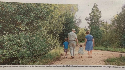 Tienen los abuelos la tarea de darse cuenta de estar vivos, de hacerse las preguntas que se quedaron olvidados y de sacar a pasear y de cuidar al nieto y a la nieta, que es una gran tarea, una tarea de la que se no verá el final. El abuelo y la nieta seguramente no verán a los nietos convertidos en un hombre y una mujer de provecho, en alguien que sabe salir adelante, en gente útil, y es eso, precisamente lo que hace diferente el modo de cuidar de los abuelos que están en el paso que ahora da la nena, en el instante de este preciso paso, en sostener, acompañar, desafiar a la nieta en el paso del instante, no hay otro modo mejor de cuidar, sostener, acompañar, libres ya del futuro, y eso lo saben el nieto y la nieta.