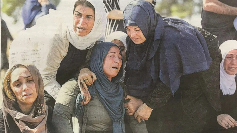 La foto que me ha llamado la atención hoy la publica el diario El Mundo. Es la imagen de cuatro mujeres desmembradas por el dolor. Si no fuera la imagen de una agencia de noticias diría que es el fragmento de un cuadro realista de la Pasión. Todas las mujeres tienen velo. Esta pasión también sucede en Oriente Próximo. En el centro la Dolorosa, de rodillas, rota por dentro, la cara realzada por el óvalo del pañuelo, los ojos cerrados, la boca semiabierta, en la desesperación de haber perdido lo más querido, los brazos rendidos, el llanto congelado. Otras dos mujeres la sujetan cogiéndola desde arriba para que no se caíga definitivamente en el pozo de la muerte, de la nada, en ese pozo en el que quiere sucumbir para no volver a sentir más esa grieta que convierte cada instante en un suplicio. Porque es mejor morir también antes que aceptar que no se volverá a oir la voz del hombre amado, que una se va a quedar como sus ropas y sus zapatos, y sus cosas, huérfanas para siempre de su dueño. Las dos mujeres que sujetan a la Dolorosa tienen las manos manchadas de haber escarbado en la tierra, son manos con anillos. Las dos mujeres son mujeres fuertes, con fuerza en los brazos y con fuerza en el alma, cargan con el peso del dolor ajeno, ellas seguramente ya hace tiempo que se quedaron sin hombre, son algo mayores, tienen la experiencia de haber vivido con el dolor de la ausencia, la experiencia que no cabe en palabras, la experiencia que hace de la memoria un punzón que siempre arde. La cuarta es la más joven tiene la frente de la devastación, los ojos perdidos en un abismo de desolación, mira y no ve, esta lejísimos todavía de las lágrimas que alivian la pena. Hay algo sobrecogedor en su rostro, es el rostro de la agonía. No puedo uno mirar esta foto más de dos minutos sin que un golpe de llanto se le venga a la garganta, sin sentir como hermanas a las cuatro mujeres, sin desear ponerse en camino para abrazarlas, sin darse uno cuenta de la estúpida y cómplice distracción en la que vive sin tener de algún modo presente el dolor del mundo, sin desear la victoria de la vida.