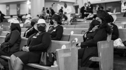 La foto que me ha llamado la atención la he visto hoy trasteando en Internet. La imagen tiene mucha profundidad. En primer plano un grupo de mujeres negras sentadas en los bancos de una iglesia. Los bancos son bajos, y solo le sujetan parte de la espalda. Las mujeres se han puesto sus mejores galas. Trajes de chaqueta oscuros, con flores de tela en la solapa y grandes enormes sombreros. Algunos de esos sombreros son pamelas, otros son como enormes cestos. Las mujeres negras reposan su gran humanidad en los bancos de la capilla, cubiertas con sus mascarillas, mientras les llega su turno. Han salido temprano de casa, mañana de domingo en el metro, en el que muchos vuelven perjudicados de una larga noche, en el que muchos visten costosas ropas deportivas de marca, ellas, con sus mejores galas, con una elegancia y una dignidad sin tiempo dejan claro que no es un día normal, una mañana normal. Han pasado de lunes a sábado trabajado sin descanso, trabajando como en los tiempos de sus padres, de sus abuelos, de sus bisabuelos. Y la mañana de domingo es la mañana para estar guapas. Esperan pacientemente en los bancos, y a una señal del director del coro, se levantan. Se levantan ellas y se levantan sus voces y entonces, con el canto, se despierta una melancolía azul y profunda, la tristeza de quien está recogiendo algodón en los campos, y está en sus voces, y en sus himnos que hablan del Jordán, los ocasos volviendo a casa y el deseo profundo, profundo como el pozo del tiempo, deseo de libertad. En esas voces de domingo está la nostalgia de un mundo limpio, de mozuelas sin miedo, de viejos que esperan la muerte sin desesperación, como se espera a un buen amigo, en esas voces está la nostalgia de hombres cariñosos, de cielos claros y noches serenas. Voces de mujeres maduras en una mañana de domingo, voces del coro de una Iglesia, que vienen vienen con el dolor y la esperanza del mundo.