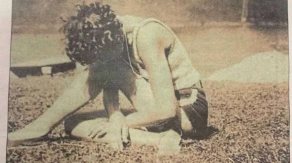 Y este estar viniendo para marcharse, este irse de la infancia no acaba de llegar, que no sabe una quién es. Y esto se se le nota en la postura de la foto: una pierna doblada y la otra levantada, con las manos debajo, como queriéndose abrazar pero no cogiendo más que viento cálido de verano, y la cabeza inclinada sin que los ojos se alcen, mirándose las muñecas y los dedos, como si las manos no estuvieran hechas para tocar, para abrazar lo que haya de venir de fuera. En este ovillo en el que está convertida la protagonista de la foto, no hay más que un mirarse y remirarse, por dentro y por fuera, en este ovillo hay mucho yo y poco tú, y mucho imaginado y poco sucedido, y las montañas suizas y el cielo suizo, muy inmensos y muy grandes, no aparecen por ninguna parte. Toda ella, la chica de la foto, está vuelta hacia si misma y no acaba de pasar el puente y no acaba de dejar que otros digan su nombre, lo repite ella misma una y otra vez con la cabeza gacha: y esta salmodia es como una condena. Allí quedó Gala en el prado suizo hasta que una voz, un abrazo, un algo o un alguien le hizo levantar la cabeza. Y entonces sí, se fue dulcemente lo propio de la infancia y vino más dulcemente lo de ser persona crecida: ser deletreado desde fuera. Gala creció, nosotros no si hemos puesto si quiera el pie en el puente o mirado al monte.