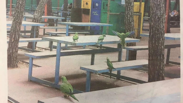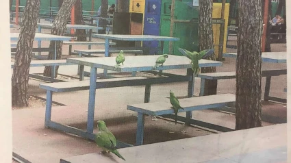 La foto que me ha llamado la atención hoy la he visto en La Razón, en la sección de Madrid. Es una foto inquietante, es la imagen de un merendero con sobrios y esforzados pinos de ciudad -hay que ver qué voluntariosos son los pinos de cualquier capital-. Siempre los dejan sin pinocha. El merendero está vacío, las mesas y los asientos sin vecinos que se solacen. Su lugar lo ocupan una, dos, tres, cuatro y cinco cotorras desinhibidas que han tomado posesión del mobiliario urbano sin que haya en ellas ni asomo de esa discreción, esa humildad llena de dignidad de los intendentes, de los gorriones. En estas cotorras de verde chillón, de ruido estridente, todo es suficiencia, vuelan, se posan y amedentran al resto de pájaros estas cotorras como si todo les fuera debido. Lo suyo es ocupar espacios, hacerse notar, llenar el cielo y el suelo. Ninguna sabe callar. La primera de la foto, a la hora de la cena, no para de contar lo mal que la han tratado en el trabajo y lo poco que le reconocen lo mucho que vale. Lo mucho que hubiera podido ser si le hubiera sonrreido la fortuna. La segunda es doña quejas, puede pasarse horas explicando lo mal que la han tratado en el metro, lo poco que le respetan sus vecinos, lo mucho que le molesta que la lluvia caiga desde lo alto y no surja de las profundidades de la tierra, que es lo que a ella le convendría. La tercera explica siempre lo mucho que sabe y lo grande que es la ignorancia de los demás. La cuarta ensarta lugares comunes con mucha energía y la quinta se expande en cuatro idiomas. Cotorras expansivas y sin complejos, que huyen de sí mismas como de un mal virus, que buscan la distracción barata, autorretrato de un mundo que odia el silencio.