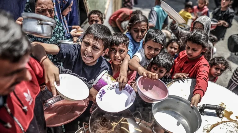 Foto de una cola al sol. Es una cola formada por niños y mujeres. En la foto solo hay un hombre con un chandal negro y rojo que intenta repartir los spagetis con caldo que ha cocinado en una gran olla. No lo consigue porque todos los niños luchan por conseguir que la pasta caiga en su plato. Los niños estiran el brazo y no le dejan al cocinero mover el cazo. El chaval más agresivo le coge el brazo y le pone su plato blanco delante de las narices. Parece que le grita. Una niña más silenciosa y más hábil consigue que su cuenco de loza con un ribete morado sea de los primeros. La niña hábil y silenciosa se ha puesto de puntillas. Hay otra niña con un gran perolo que se ha quedado más rezagada, pide con la cabeza baja, abatida, como si ya no tuviera esperanza. Una niña sin esperanza. . Se ha corrido la voz de que el cocinero está haciendo reparto y llegan mujeres con velo de colores y más niños que ni juegan ni van a la escuela. Son niños que viven muy lejos de su casa, que se han quedado huérfanos, que tienen dentro el miedo que ven en la cara de sus madres. Que desayunan agua sucia y cenan historias feas, son niños a los que les duele la tripa pero no pueden ir al médico. Niños de pelo negro y piel cetrina que ven todos los días la cara extraña y ausente que se les queda a los muertos, que ríen poco o nada, que caminan entre escombros, que escuchan día y noche sirenas, bombas, gritos y lamentos, niños vendados, niños que cuidan a hermanos más pequeños, que se hacen los mayorcitos imitando los gestos de dolor y de odio de sus padres, que tienen la cara sucia, que pasean en viejas bicicletas con banderas, que se asoman por los agujeros abiertos en las paredes por la metralla. Niños que hacen la cola por un plato de spagetis con sopa.