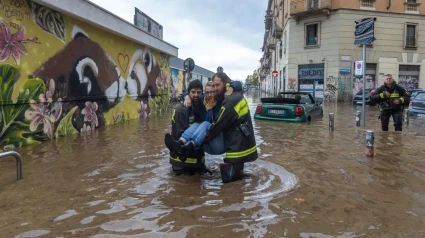 Foto de una calle inundada. El agua, que no está demasiado sucia, llega hasta las rodillas. La imagen tiene mucha profundidad y a lo lejos unos chopos se reflejan en las ondas y un cielo con nubes de prácticas se asoman a la ciudad convertida en pantano. De cerca, un descapotable verde convertido en un coche anfibio y unos ositos cursis, color chocolate, dándose un beso en el mural de una pared. Dos hombres fornidos con katiuskas muy altas, con impermeables amarillos y azules del servicio de bomberos sostienen a una joven con vaqueros. Los bomberos forman con sus brazos una sillita de la reina y la chica se agarra a sus cuellos con fuerza. Rescata. La chica ha sido rescatada del agua, del miedo a la ansiedad, a morir ahogada, a vivir demasiado, a respirar demasiado, rescatada del miedo a no amar lo suficiente, de no ser amada, de no ser amada lo suficiente, rescatada del miedo a quedarse sin dinero, rescatada de las humillaciones, rescatada de sí misma, rescatada de ese dolor que provoca haber hecho algo malo, rescatada del dolor de haber sido negligente y no haber atendido a los avisos de los que tenían más experiencia, la chica ha sido rescatada por brazos fuertes del aburrimiento, del fastidio de que todos los días sean iguales, rescatada de los ejércitos de personas bien intencionadas que quieren ahorrarle el sufrimiento, rescatada de la inundación y de los listos que quieren decirle lo que tiene que hacer con su vida para aprovecharse de ella, rescatada de la soledad, rescatada de la compañía. Rescatada.