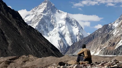 La foto de hoy llega de Pakistán. Un paisano con un gorro que le protege del sol se sienta sobre una piedra, una piedra que está en la orilla de lo que parece un torrente seco. El paisano mira el paisaje, como si no lo conociera, como si no hubiera nacido allí, como si todavía hubiese algo que descubrir. El paisano, de espaldas a la cámara, tiene primero ante sí una colada, como una playa de chinos.