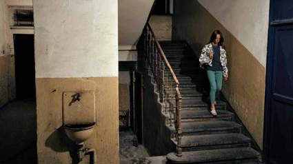 La foto que me ha llamado la atención hoy la he visto trasteando en internet y es de Jeff Wall, un canadiense que es un clásico. La imagen parece sencilla. En el centro una escalera de una casa antigua. Los escalones de piedra y estrechos. La barandilla de madera. Debe ser el último piso, el que da a la calle. Hay poco luz, las paredes, pintadas de blanco, con un zócalo crema, cubiertas las paredes con un polvo gris que debe tener tanta edad como la última reforma. Una joven con sandalias desciende y ya ha llegado a los últimos peldaños. Va cuidadosamente conjuntada en verdes, cuidadosamente peinada. Contrasta la pulcritud de su ropa con la oscuridad, el hastío y las sombras que dominan el último rellano. La fuerza de la costumbre ha dejado todo sucio, lejano el aire que traía novedades e inicios. Y la chiquilla está ensimismada, escuchando como las tripas le reclaman salir a la calle. Salir a la calle a buscar el vértigo de algo que podría no haber sucedido y, que de pronto ocurra y le haga mirar con atención los vientos grises, las nubes que no terminan de escapar, los gorriones con su traje de hace siglos que invitan a buscar la luz, mirar, si, mirar con atención, los jardines melancólicos y escuchar su tristeza que es la de chiquilla. Una tristeza que mate la desesperanza. La chiquilla baja, ya lo he dicho los últimos escalones y sale a la calle porque no tiene suficiente, no le basta, no está tranquila en el cuarto del viejo edificio donde la costumbre ha convertido en cosa sabida casi todo. La chiquilla, sin darse cuenta, antes de que se acabe el día sale buscando un crepúsculo de rojos y malvas que le incendie por dentro.