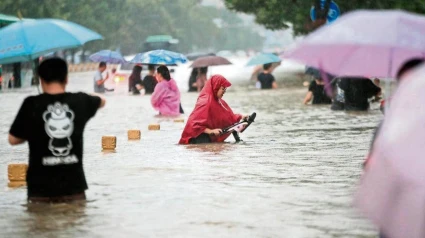 La foto que me ha llamado la atención la he visto hoy en La Vanguardia. Es la foto de la calle de una ciudad de un país remoto. La calle ancha, arbolada, sufre una inundación que la convertido en un raudal. Un agua gris ha invadido la calzada y las aceras. Le llega hasta la cintura a los peatones que luchan contra la torrentera furiosa bajo sus paraguas de colores. En primer plano un joven con una camiseta negra, se ha detenido para coger fuerzas. Al fondo una fila de resignados vecinos cruza de un lado a otro sin aspavientos como si fuera muy normal que el nuevo río les llegara al pecho. Y en medio de la escena una chica con un chubasquero rojo se ha quedado atrancada. Se ha empeñado en lo imposible: empujar contra la corriente una bicicleta. El velocípedo está sumergido casi hasta el manillar. La empresa que se ha propuesto la chica del chubasquero rojo, de momento, es algo inalcanzable. Pero no hay nada que le haga desistir de su terca decisión. Las circunstancias la han convertido en una quimera. Pero hay está la chica del chubasquero como yo cuando pretendo que mis palabras sean prudentes, cuando quiero ser diligente, cuando me propongo que no me afecten los desprecios, cuando intento no irritarme por los ruidos nocturnos, cuando me receto indiferencia y templanza, cuando me convenzo a mi mismo que este verano sí lo voy a conseguir y no voy a enzarzarme en discusiones que no conducen a nada, cuando me digo que querer es poder, cuando me pongo videos con historia de superación para convencerme de que la voluntad lo puede casi todo. Así está la chica de la foto, como yo, persiguiendo la quimera de un carácter forjado como el hierro más resistente. Quimeras de la voluntad. Hay que esperar a que salga el sol para que las calles se sequen. Entonces es cuando ruedan las bicicletas.