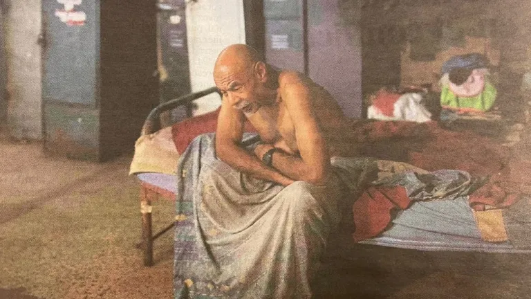 La foto que me ha llamado la atención la he visto en el País. Es una imagen tomada con una luz tenue. El suelo del terrazo de esa habitación está desgastado del ir y venir de las gentes que allí pernoctan, de las palabras no dichas, de las noches en vela, que todo eso erosiona mucho el suelo en el que uno habita. Un hombre mayor, calvo, con el torso desnudo se acaba de levantar de un lecho estrecho en el que las mantas y las sábanas parecen el resto de un naufragio, de un noche de zozobra.