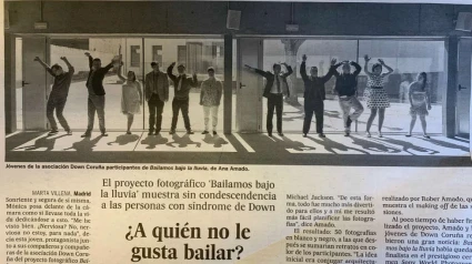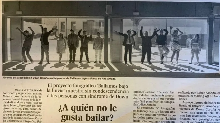 La foto que me ha llamado la atención la publica el diario El País. Es una imagen en blanco y negro de Ana Amado que retrata a diez personas con un cristal a las espaldas. Los protagonistas del retrato están a contra luz, por eso es difícil verles las caras, pero esta forma de posar destaca sus gestos, sus brazos en alto, sus manos abiertas, sus pasos que en algunos casos imitan las posiciones de los bailarines. Esos gestos se proyectan en largas sombras, las figuras se estilizan y se quedan pegadas al suelo como trazos esenciales de los cuerpos que bailan. Los protagonistas son miembros de la asociación Down de Coruña que escuchan música y han sido inmortalizados mientras mueven el esqueleto. El chico del extremo levanta mucho las manos y se queda colgado de una nota que solo está en su alma, Otro alza los dos brazos como si fuera un guardia de táfrico, el orden de los acordes le ha entrado muy dentro. Y el de más allá levanta un pie y se lo pega a la rodilla como un jotero tradicional. Las chicas son un poco más tímidas, solo dos de ellas se desmelenan. Y habrá alguien que piense que es una gran obra social, de inclusión, fotografiar a personas que son diferentes por razón de sus cromosomas, que es una obra social retratar a quien baila de otro modo, aparentemente torpe. . Y a mi que me parece que en esta foto no hay nada de eso. A mi parece que esos brazos, esas manos que pueden parecer desacompasados nos retratan a todos. ¿Quien escuchando a el señor don Juan Sebastian no se ha dado cuenta del que el modo en el que se alza de la cama, se toma el café, saluda a su mujer, se monta en el metro es torpe, desaliñado? ¿Quien no se ha dado cuenta escuchando un piano del señor don Amadeo que todos y cada uno de los gestos de sus miembros y de sus entrañas están desacompasados? Que cuanto más escucha uno la música se da cuenta de que es imposible, literalmente imposible bailar la vida bien. Eso hace que la ¿Quién no se ha dado cuenta de que mientras suena la música de los astros uno nunca entra en tiempo, siempre sale tarde, a menudo pisa al de al lado? Si alguien no se ha dado cuenta que mire esta foto. Es el retrato de todos.