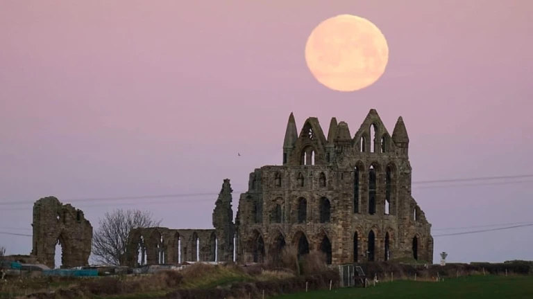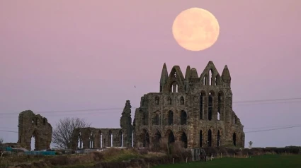 La foto que me ha llamado la atención esta tarde tiene como protagonista esta luna llena que nos acompaña en las últimas hora, la primea luna del año, grande y tan redonda que dan ganas de encaramarse para ver si la podemos alcanzar. Tan redonda, tan completa que hace gritar a los que nos sabemos siempre incompletos. La llaman la luna del lobo, será por eso, por los quejidos de nostalgia que nos arranca. La luna amarilla con aguas de sangre flota como un milagro en las últimas luces del crepúsculo. El cielo de un rosa de acuarela. La luna cuelga sobre las ruinas de una abadía. Sin techo, con las ventanas como ojos que lloran. Las piedras han perdido ya el rastro de los himnos y de las alabanzas. Hace tiempo que el viento rompió las vidrieras y ahora debajo de las tablas que aún no se han podrido anidan los ratones. Ahora solo un viento sin nombre se pasea por lo que queda de la iglesia. Y hay un extraño olor que recuerda a las dalias. Y seguro que pronto se asomará un búho tempranero. Se caerá la abadía en una noche de luna sin estrépito como se caen y se desmoronan las casas, como se destruyen las casas y en su lugar queda un campo abierto, o una fábrica o un rascacielos o la circunvalación de la ciudad. La piedra vieja se utilizara para casas nuevas. Hay quien se empeña en retornar, en volver, en recuperar lo que se fue. Pero no es posible, en cierto modo es imposible reconstruir la abadía que yace bajo la primera luna de enero. En realidad cuando se reconstruye una abadía, una casa, un abrazo, una conversación nunca se vuelve al pasado se hace algo nuevo. Los retornos son una ilusión. Como dice el poeta, en mi comienzo está mi fin. Y en mi fin está mi comienzo. La primera luna llena de enero nos recuerda que todo es comienzo.