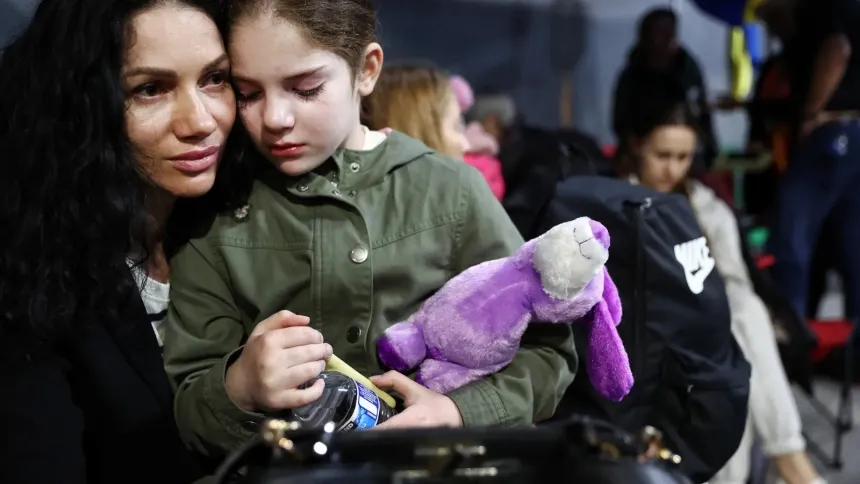 La foto que hoy me ha llamado la atención la ha hecho Mario Tama en Tijuana. En el fondo desenfocado aparece un grupo de personas que parecen estar en una sala de espera. Visten ropa deportiva cara, de marca, y parecen relajadas. La luz es artificial, suave. En primer plano una madre con su hija. La madre joven, morena, con las cejas pintadas y con la nariz grande. La madre tiene bajo los ojos enormes dos grandes surcos, más que ojeras, surcos. La madre pálida, con la mirada perdida lleva encima una tristeza y un cansancio que le tiene el cuerpo molido desde hace semanas. Lo ha conseguido, ha conseguido hacer el largo viaje desde Jarkov en Ucrania hasta la frontera de Estados Unidos. Caminatas, días y noches en coche, un avión tras otro, mucho dinero, mucho dinero gastado para cruzar el mundo. Y ahora la madre que lo ha conseguido, siente la tentación de pensar que en el fondo todo habrá sido inútil. Antes de la guerra ya conocía ese pensamiento que muchas veces se insinuaba acompañado de una amargura fácil: todo es inutil, tanto luchar para no alcanzar casi nada, y para quedarse insatisfecho con la alcanzado. Vuelve esa idea ahora después de días huyendo del horror. La niña, con el pelo recogido, un peluche morado en un brazo y una botella de agua en el otro, también pálida, tiene los ojos llorosos y cerrados. La niña apoya la cabeza en su madre. Le llega el inconfundible olor familiar de la madre, el olor de la seguridad, un olor que habla de una victoria escondida. A la madre le llega el olor de la hija que es como el olor de la niña esperanza, el olor de los brotes de abril.