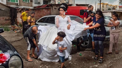 La foto que me ha llamado la atención hoy la he visto en internet y es una de las fotografías galardonadas por el Premio Siena. Esta tomada en el mayor gueto gitano de Bulgaria, en el patio trasero de una casa. Quizás no haya ni casa. Los edificios que rodean la escena están tachonados de antenas parabólicas. Las antenas herrumbrosas, parecen oídos viejos que buscan palabras que den sentido al muy frío en invierno y al mucho calor en verano. Algunas de las fachadas sin enfoscar tienden cables hacia un poste cercano. En los muros del patio asoman ladrillos con reuma y en el suelo hay basura: latas de bebida, un saco roto, restos de una antigua obra. Delante de la basura dos coches de lujo, limpios, encerados, impolutos. Y entre los dos coches una novia con un traje blanco, encajes en el talle, la falda y la cola, como tienen que ser, largas e ingobernables. La novia van bien surtida de pedrería, un collar grande en el escote, los pendientes largos y anchos caen de los orejas como una cascada abierta. El pelo peinado con un moño alto, para dejar espacio a una tiara de reina. Dos personajes en chanclas y con ropa deportiva se afanan en estirar la falda del traje y un niño en camiseta se zampa su merienda, como si fuera normal lo que está sucediendo. En la escena aparecen también dos fotógrafos y un operador de cámara para inmortalizar el momento. La novia posa satisfecha, se deja atusar. Piensa en ese momento que su novio es el hombre más guapo del mundo, tiene el pelo negro y ondulado, la piel de canela, los ojos tranquilos, las mejillas suaves, su torso se parece al marfil, sus labios son los más dulces, lo reconocería con los ojos cerrados entre una infinita fila de hombres. No hay otro como él.
