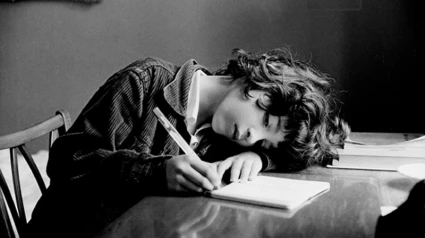 La foto que me ha llamado la atención es de Frank Hovart, que es un fotógrafo croata del que hay una exposición en Tarragona. La imagen, en blanco y negro, tiene una luz serena. Una luz serena que cae sobre la mesa, el cuello y el pelo de una moza muy bonita en su mocedad. La mesa, barnizada con brillo, refleja el gesto de la joven, como en un espejo de lo que será, las caras bonitas siempre se ven como en un espejo que quisiera uno atravesar para saber lo que hay detrás, lo que hay delante. Así son las caras bonitas. La moza estudia con un libro gordo y un cuaderno. Y ha agachado la cabeza para escribir mejor y la melena corta y negra, revuelta con gracia, revuelta como un jardín exhuberante, y desordenada como hierba de los trópicos, cae sobre las páginas. La moza apoya la cabeza en un brazo, y el cuello y los pómulos, que son como de mármol, pero un mármol que ningún escultor ha visto nunca, serenan un rostro de ojos grandes y melancólcos. Está la moza serena. No estará tan tranquila luego, cuando salga al balcón y un paisaje soñoliento duerma bajo el cielo gris y rosa del crepúsculo. Cuando en el jardín silencioso allá un aire de promesa, Cuando el mozo que dice ser su novio le diga que va besarla, cuando ella le ofrezca sus mejillas de un mármol que ningún escultor ha visto nunca. Cuando no se atreva a mirar al mozo que dice ser su novio. No estará tan tranquila cuando las lágrimas le rueden de sus ojos meláncolicos. Le dirán a la moza luego que esa melancolía era cosa de chiquillos, cosas de jardines silenciosos y de besos primeros. Y la moza sabrá que aquella melancolía, plenitud e insuficiencia juntas, era y es el libro que todo lo explica.