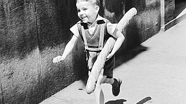 La foto que me ha llamado la atención es de Willy Ronis un clásico de la fotografía. Se publica en español Aquel día un libró en el que retrató la vida cotidiana de la Francia de postguerra. La imagen de la que hablo seguramente está tomada al final de la primavera o al inicio del verano, en un a mañana cualquiera en una calle cualquiera. Solo ve un trozo de acera y parte de la fachada de piedra de una casa de vecinos. Un niño es el protagonista. Un niño con unos pantalones cortos de tirantes. Debajo de los tirantes un chalequito de punto con el cuello de pico y una camisa también corta. El niño corre en una mañana cualquiera por una calle cualquiera. Tiene los dos pies en alto, está en pleno salto y lleva el brazo derecho adelantado. En la boca una sonrisa grande de satisfacción, de alegría limpia, una sonrisa que le llega hasta los ojos y que le recorre el cuerpo. Su sombra es breve, el sol está alto. El niño que corre en un mañana cualquiera por una calle cualquiera mientras sonríe lleva debajo del brazo una larga y gran barra de pan. La barra de pan es casi, casi tan grande como él. La barra tostada por fuera, con una miga esponjosa por dentro. Mientras el niño corre siente bajo el brazo que está todavía caliente, huele al fuego y al trigo de la tahona. El niño no quiere ser de plata, no quiere ser de agua, en su frente de harina, en su risa de bueno, no hay más que alegría por el pan de hoy. Tiene, para sorpresa de los mayores, la alegría de los que se han encontrado la miga y la corteza sin buscarlas. Y corre a contarlo, a decírselo a todos, a celebrar una fiesta en casa. ¡Tengo pan¡ grita por el barrio. Cosas de chiquillos, de niños que se maravillan de los pájaros, del olor del agua la colonia de los domingos y de el pan de todos los días.