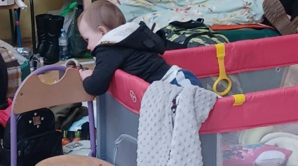 La foto que me ha llamado la atención no la he visto en ningún periódico ni en internet. Está en mi móvil. La he hecho en la escuela número 5 de un pequeño pueblo polaco. En el sótano de ese gran colegio, que es un gran gimnasio, duermen los que no han pegado ojo en días. Toda la cancha de baloncesto es una gran playa con hamacas bien ordenadas, tapadas con mantas. El gimnasio se ha convertido en la playa a la que llegan las olas de los que huyen. No toman el solse tumban y duermen. Duermen un sueño inquieto. Y al despertarse se dan cuenta de que no estaban dentro de una pesadilla del personaje de una película de terror. No. Al despertarse todo es tan extraño, tan incomprensible, pero tan real como antes. La guerra no era un mal sueño. En medio del gimnasio un niño que debe tener un año hace travesuras. Está dentro de una cuna de viaje, un parque. Parece que es el único que no necesita descansar. Ha sacado un brazo de la cuna y tira de una silla escolar. Hace mucho ruido pero su madre no se despierta. Su madre, en la hamaca que hay al fondo por fin duerme, por fin descansa. El niño no sabe que ha pasado, ya no está en su cuarto de siempre, ya no oye las voces de siempre. El niño sabe que no han dormido en casa. Alguien cuando el niño crezca, dirá que él era muy pequeño y que no se enteró de nada. Pero se ha enterado de todo, vaya si se ha enterado, y sobre todo se ha enterado de lo más importante. El niño sabe que está con su madre. El niño acepta, está conforme, mientras su madre no se vaya muy lejos. El niño, en un mundo que se derrumba, se dedica a lo que sucede: su madre que duerme, su madre que se despierta, su madre que le mira.