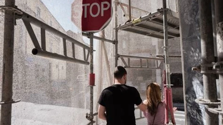 La foto que me ha llamado la atención es de una calle cualquiera. Una calle cualquiera con una acera estrecha. Una pareja joven pasea por la calle cualquiera con una acera estrecha. Pasan junto a una señal de stop y se meten debajo de un andamio. En la calle cualquiera con una acera estrecha están de obras. Ya lo dice el poeta: las casas se levantan y se derrumban, se desmoronan, las amplían, las trasladan, las demuelen, las restauran, viejas piedras para nuevos edificios, Vieja leña para nuevas hogueras, Las casas viven y mueren, hay un tiempo para la construcción y otro para el derribo. Todo parece repetirse, parece que nada avanza, que estamos pedaleando en una bicicleta estática pero es una apariencia. El conocimiento impone un esquema y por eso falsifica lo que ocurre. El instante es nuevo. Muchos hablan de tradición, pero detrás de esa palabra no hay sabiduría sino miedo, miedo al tiempo, miedo a las casas que se levantan y se derrumban, se desmoronan, y se restauran. Nos pasamos la vida aprendiendo a poner ladrillos y cada intento es un nuevo principio y, también un nuevo tipo de fracaso. Para nosotros solo existe el intento, lo demás no es asunto nuestro. La casa es el principio, deberíamos ser exploradores, aquí o allá, no importa dónde. En busca de una mayor intensidad, recordando siempre que para nosotros solo existe el intento, lo demás no es asunto nuestro.